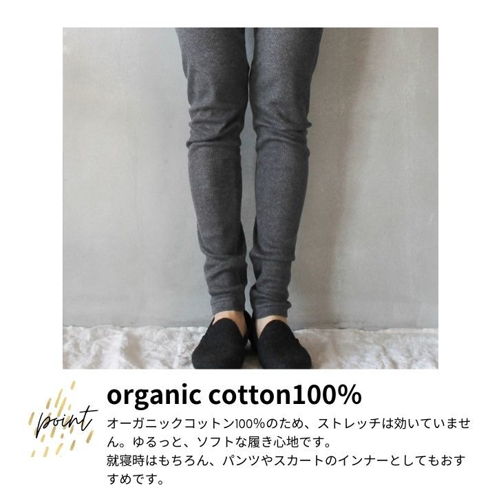 【slowpline】オーガニックコットン 100 %の細幅リブの柔らかレギンス(スパッツ)オーガニックコットン100%!ゆるっと、ソフトな履き心地縫製に使用している糸も綿100%。