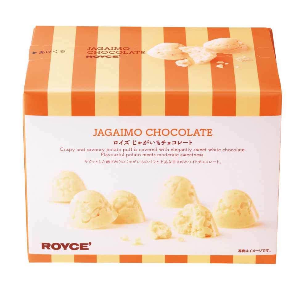商品情報 商品名 ロイズ じゃがいもチョコレート 130g (個包装込み、19個程度)アレルギー成分 乳・小麦原材料 ポテトパフ、ココアバター、砂糖、脱脂粉乳、全粉乳、乳糖、アーモンドパフ、アーモンド、乳化剤、膨張剤、香料、カロチン色素、(原材料の一部に小麦・大豆を含む)賞味期限 製造日より3ヶ月保存方法 直射日光、高温多湿を避け、25℃以下で保存してください。
